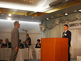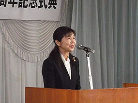 続いて、島根県の石原恵利子副知事から祝辞をいただいた。「組合設立以降常に品質向上に努められ、高品質な生コンクリートの安定供給により本県の社会資本整備に大きく貢献してこられた。社会資本整備を通じた地域社会の発展に今後も一層の力添えをいただくようお願い申し上げる。」と述べられた。