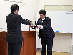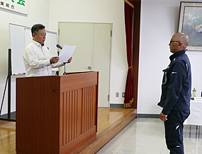 続いて、表彰規程により令和6年度コンクリート主任技士試験合格者1名、コンクリート診断士試験合格者2名、コンクリートマイスター被認定者1名の表彰が行われ、被表彰者を代表して森島建設(株)の小野大輔氏が謝辞を述べた。
