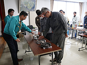 (株)東洋電機工業所 平岡講師、門田講師による講義であった。実際に摩耗した部品を見ながら、水中ポンプのトラブル「ポンプが止まった・水が出ない・脱水機打ち込みポンプ」の3つの場合で対応の仕方を学んだ。