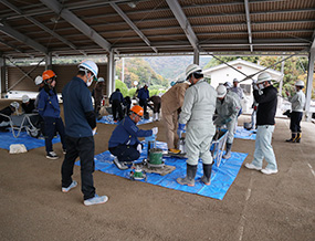 また、島根中央生コン葛yび出雲地区生コンクリート協同組合技術部にご協力いただき、工場設備の見学、スランプ試験・空気量試験の実習を行った。